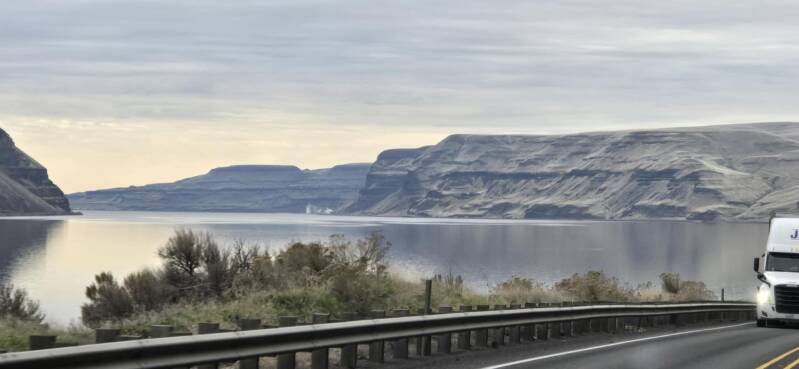 We spent a night in a truck stop just inside the Oregon state line. I hadn't been able to see much as we traveled through the darkness, so I was expecting to witness some beautiful vistas the next morning. I was not disappointed.