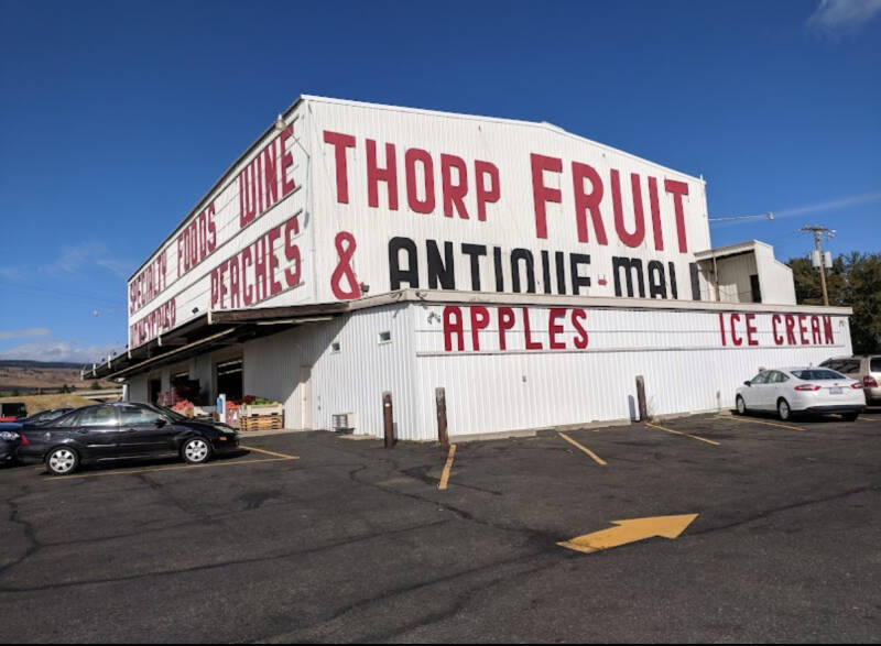 A little saddened to leave the area, mixed with the desire to see what else was ahead, we drove on toward our first destination. Before we could reach it, however, we spotted a large white building with writing on the sides boasting fruits and antiques. Yes! I wanted to take a peek at both. We strolled inside with the chill on our backs, thinking about coffee. But there was so much to see and try and purchase that I admit I could not make up my mind. I opted for huckleberry tea and fresh Washington apples.