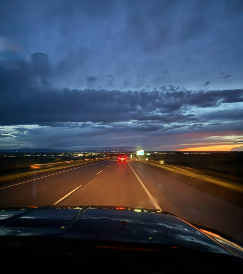 We did pull off the highway around lunch time, which also kept us safer when a thunderstorm rolled through.